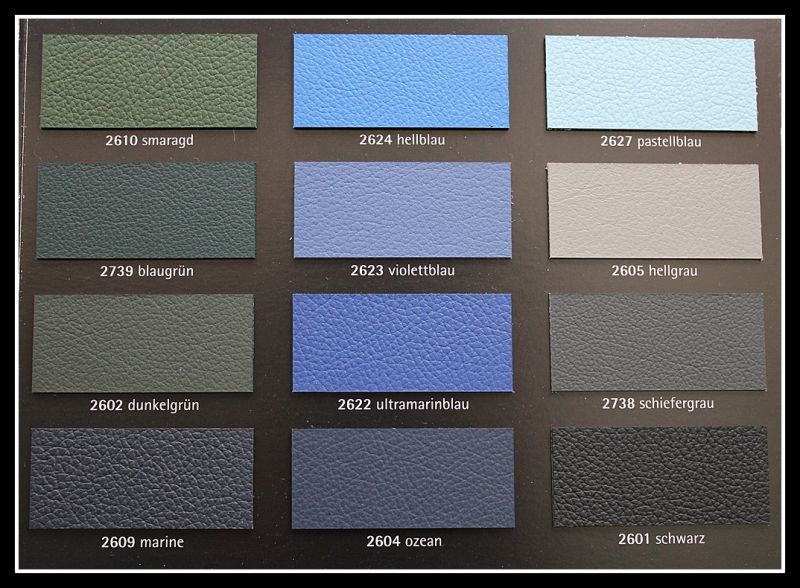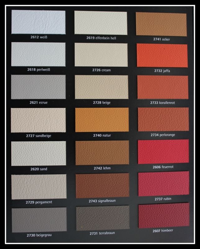 Ledermuster und Farbkarten senden wir Ihnen mit der Bitte um Rückgabe gerne auf Anfrage zu.