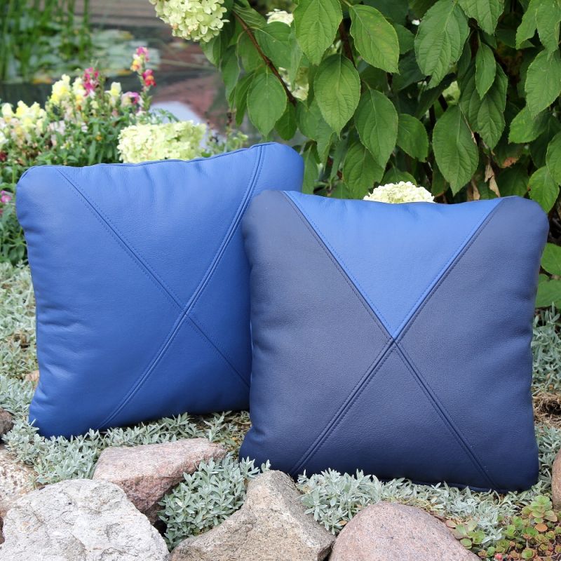 Echtlederkissen mit Kreuznaht 40 x 40 Violettblau + Ultramarinblau inkl. Füllung.