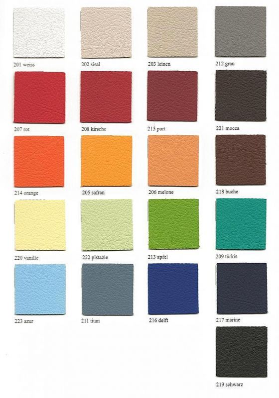 Ledermuster und Farbkarten senden wir Ihnen mit der Bitte um Rückgabe gerne auf Anfrage zu.